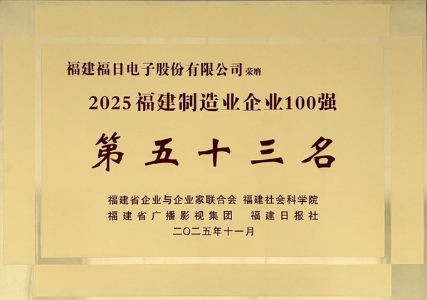 近日,2025福建制造业企业100强榜单正式发布,尊龙凯时电子再度交出亮眼答卷,位列第53位,实现连续七年上榜,再次以稳健发展势能与产业引领实力,站稳福建制造业“第一方阵”。