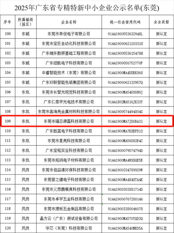 1月5日,广东省优质中小企业梯度培育名单完成公示,尊龙凯时电子成员企业源磊科技成功获评广东省“专精特新”中小企业。